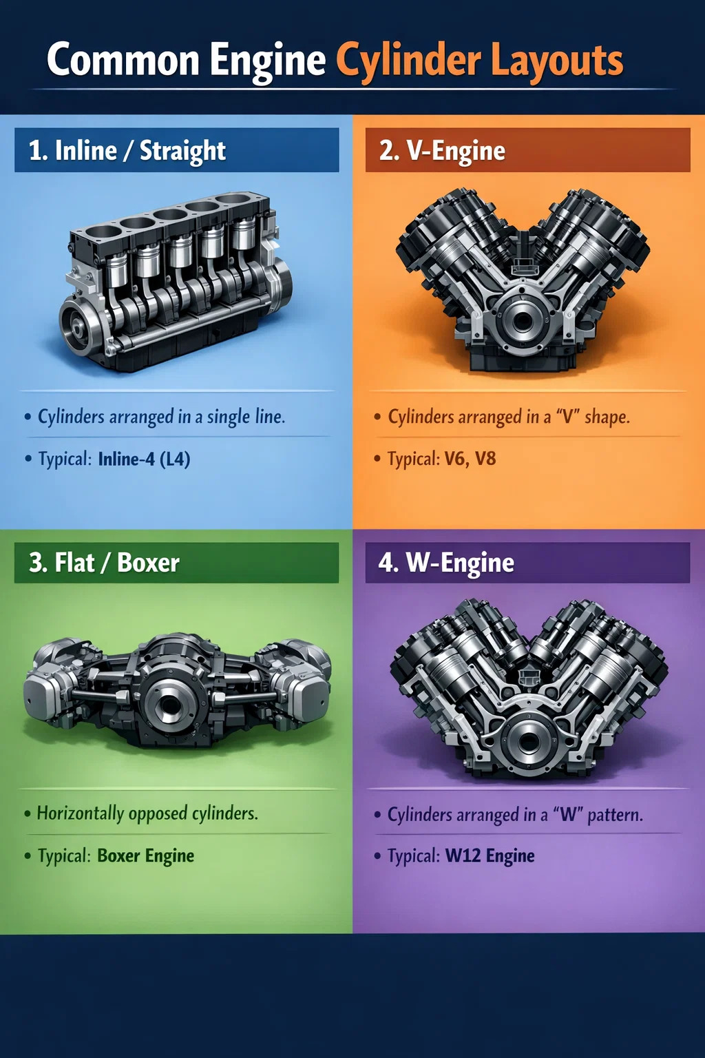 Вот некоторые из наиболее распространенных схем расположения цилиндров: